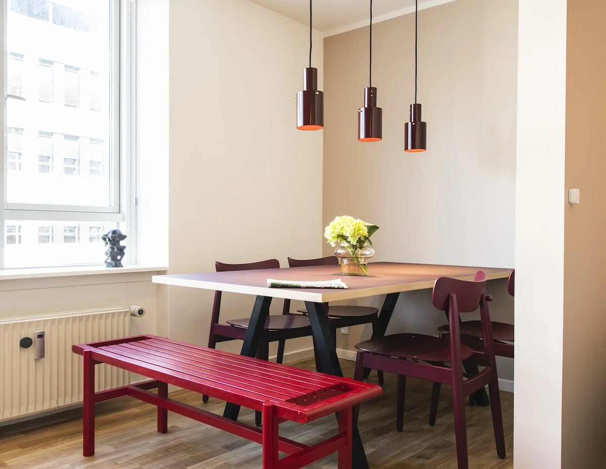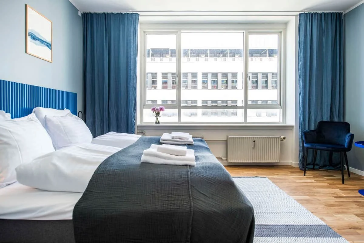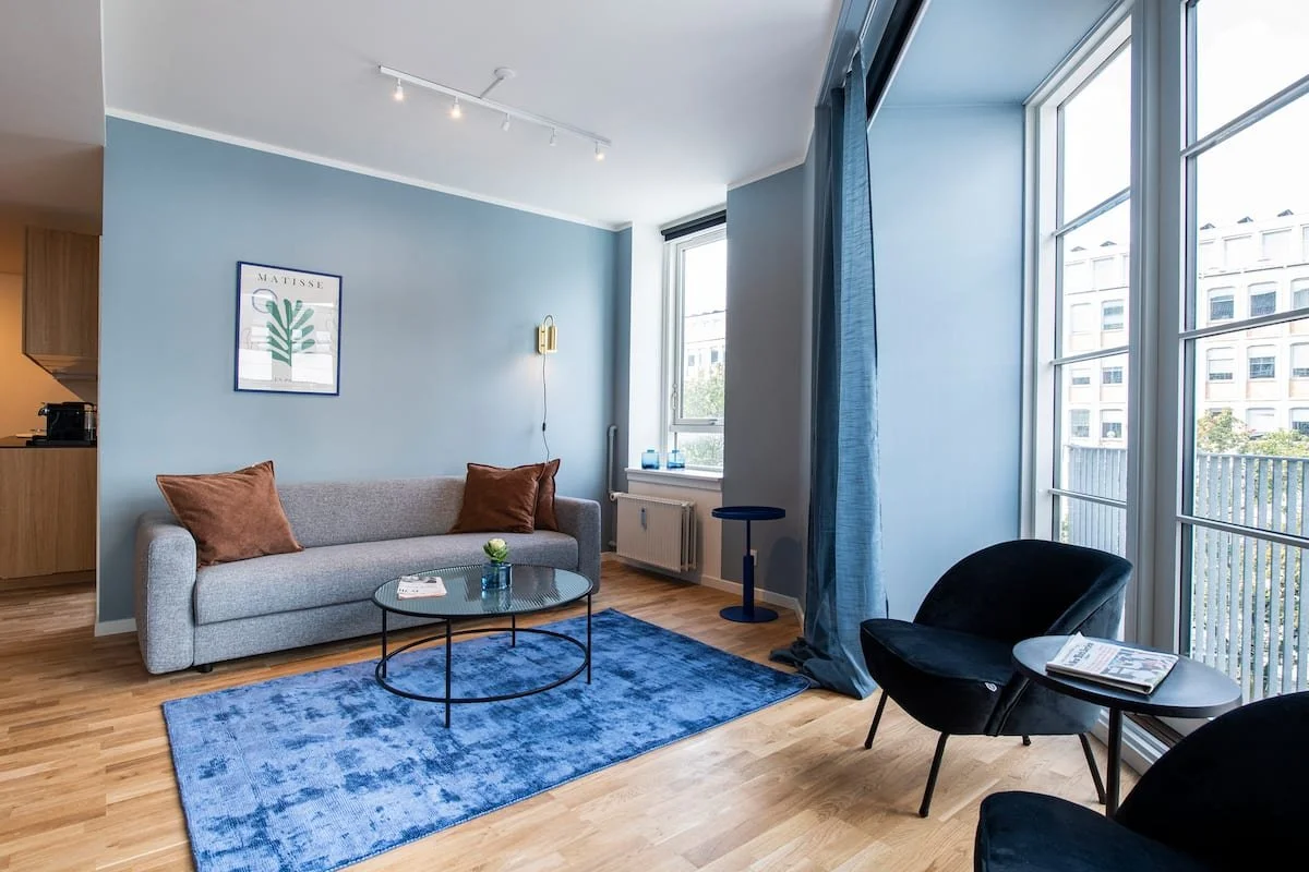 Opgaven var at skabe et unikt koncept og design for 12 nyopførte hotellejligheder i København. Udtrykket skulle være let, moderne og iøjefaldende, men også hjemmeligt og ikke mindst robust til professionel udlejning - Jeg valgte to forskellige farvepaletter - tone i tone og kontrastfarver.